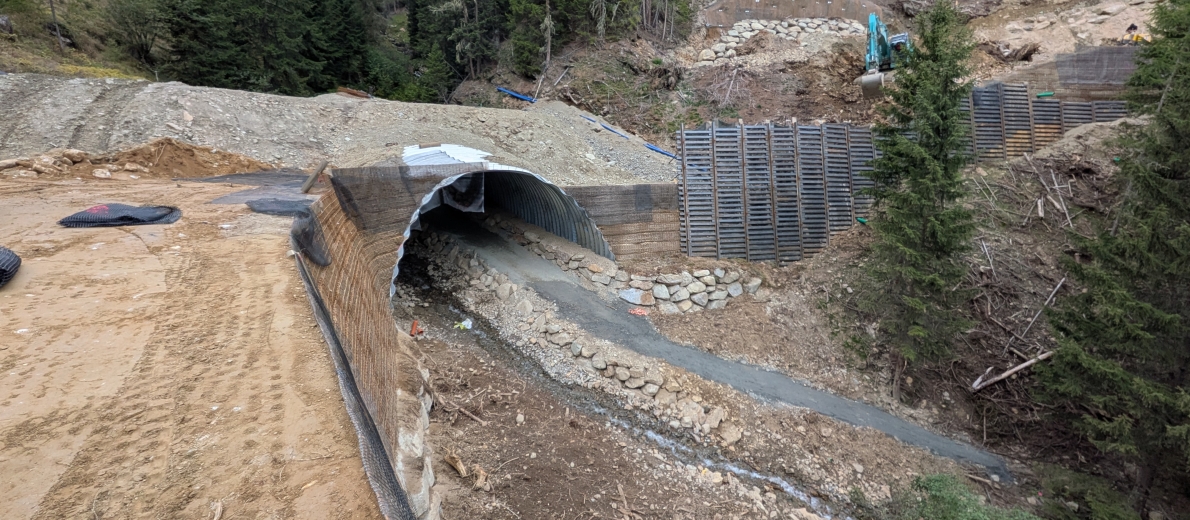 Um mit einer Neubaupiste eine Gebirgsbach und einen Wanderweg zu überqueren, entschied man sich für zwei unserer Wellstahlbogenbrücken.