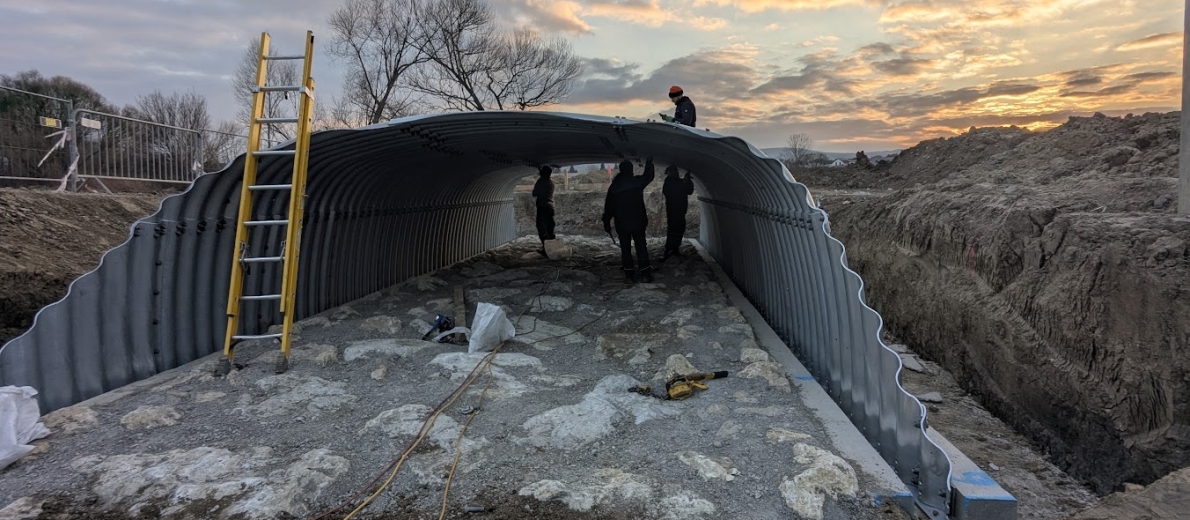 Als Alternative zu einer Betonrahmenbrücke kam unser superflaches Wellstahlprofil zum Einsatz.